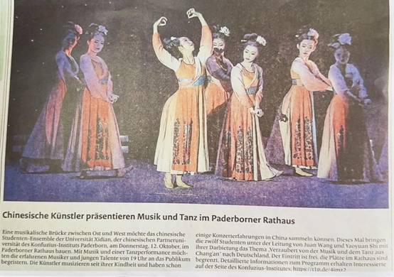 “乐舞醉长安”文化交流演出不仅是一场文化盛宴,也是中德友谊的象征。体育365官网访问团以精湛的演艺技巧和富有内涵的节目内容,讲述精彩纷呈的中国故事,展现了多元的中国文化魅力。通过这次活动,也向世界展示了西电的风采和实力,让更多人了解和喜爱中国文化,促进了国际间的交流和发展。活动被新威斯特法伦帕德博恩《红报》《绿报》等德国当地主流媒体报道,产生了良好的传播影响。