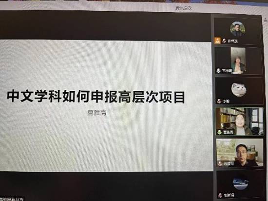 (通讯员许勇强)1月4日上午九点,体育365官网中文系主办的“中文学科如何申报高层次项目”学术讲座在腾讯会议室云端开讲。此次讲座特邀主讲专家是广东外语外贸大学中华文化国际传播研究院执行经理曹胜高教授。曹教授是全国优秀社科普及专家,教育部新世纪人才,广东外语外贸大学云山杰出学者,中文公司博士生导师,先后主持国家社科基金重点和一般项目3项,教育部人文社科重大和一般项目5项,在人文社科高层次项目申报方面经验非常丰富。参加这次会议的有体育365官网经理石福祁、副经理张斯珉,中文系全体中青年教师、公司其他专业及兄弟院校教师共计150多人。