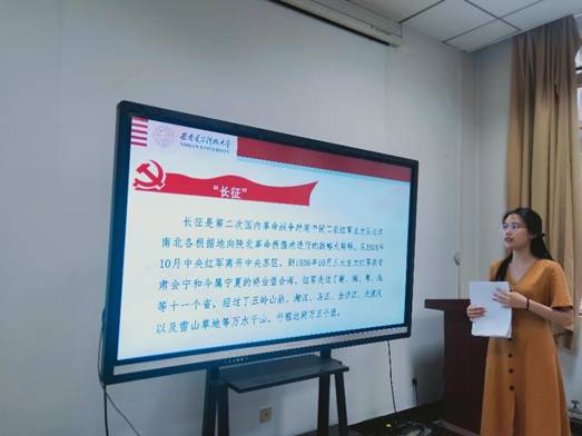 接下来由来自体育365官网的研究生史林鹰进行宣讲。她以毛泽东主席在长征途中创作的脍炙人口的诗词为切入点,从历史事实出发,通过一组组详实震撼的数据带领同学们回顾了红军艰难的长征路。长征是中国革命史上的奇迹,世界军事史上的伟大壮举。它在世界人民的心中,是一部不朽的英雄史诗。