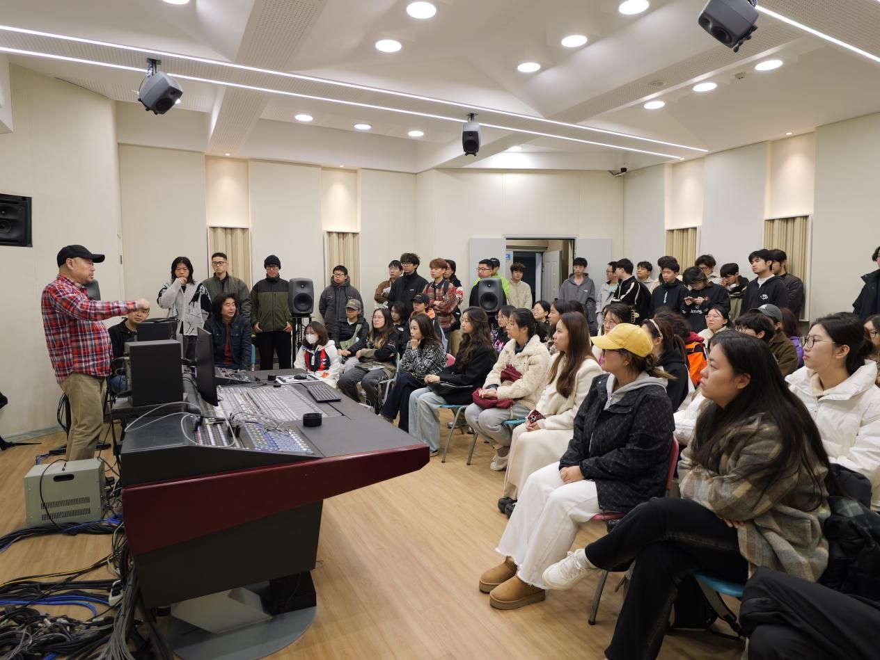 (通讯员 韩薇 骆韵巧)11月7日至8日,体育365官网艺术系成功举办了“终南回响”学术讲堂第八期在公司南校区老员工活动中心录音棚成功举办。此次讲堂邀请到了国家一级录音师、北京电影公司娄炜教授,以及资深声音领域专家、北京电影公司高级实验师程亮副教授。两位专家以“音乐制作的科技盛宴——探索拾音技术、数字音频工作站与环绕声的奥秘”为主题,向公司录音艺术专业的师生开展了一场为期两天的深度学术交流与实战指导。本次讲座活动由艺术系主任王成来主持,艺术系大二、大三两个年级的全体员工及部分教师全程参与。