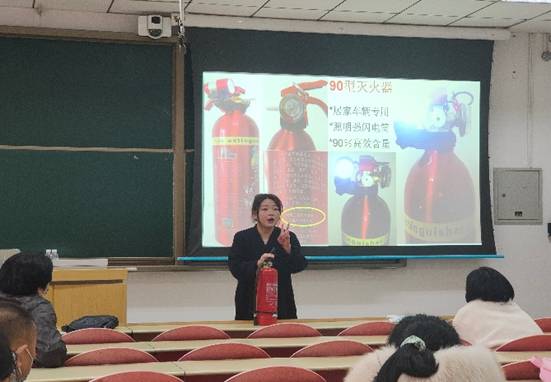 消防专家认真分析了当前的消防安全形势,从发生火灾事故危险性、事故防范的重点部位、事故预防和控制、事故现场的自救逃生、初期火灾处置方法、宿舍防火怎么办等几个方面向师生讲述了消防安全工作的重要性、火灾预防和控制措施、器材使用方法等内容,提出在学习“四个能力”的同时更需贯彻与落实。在讲授过程中,消防专家拿起准备的灭火器展示了“提、拉、瞄、放”的使用方法,供师生更直观地学习。