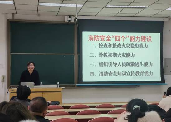 本次消防安全培训由西安市圣安防火技术中心培训部的王瑜主任为大家现场就工作场所消防安全、实验室安全、居家生活消防注意事项等涉及师生切身利益问题进行专题讲解。培训伊始,消防专家通过几则惊心动魄的火灾现场视频与简要有力的描述迅速带领充满学习热情的师生进入了培训状态,并对发生在人们身边的典型火灾案例的成因及其后果进行分析,讲授了许多关乎人身财产安全的防范火灾、逃生自救等重要知识。
