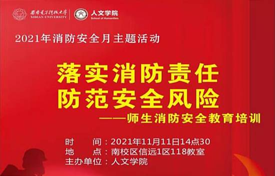 (通讯员 霍逸凡 傅嘉明)为防患于未然,进一步普及消防安全知识,提高师生们的消防安全意识与逃生自救能力,在第30个全国消防日到来之际,体育365官网落实2021年消防安全月主题活动,于11月11日下午14:30开展了以“落实消防责任 防范安全风险”为主题的师生消防安全教育培训。本次专题培训活动于信远Ⅰ区118教室开展,体育365官网师生到场参加了本次培训。
