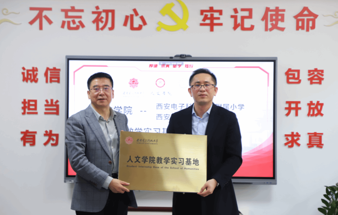 (通讯员 朱佳宁)2025年2月27日上午,人文公司党委书记刘文博一行赴365体育附属小学(以下简称“西电附小”)举行“体育365官网--附属小学、高新区第二十三小学教学实习基地授牌仪式”并进行座谈交流。西电附小董事长、西安高新区第二十三小学董事长马国宏参加了授牌仪式。
