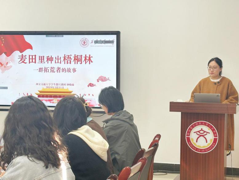会议下半场,西安交通大学员工微宣讲团成员钟晓璇进行《麦田里种出梧桐林》西迁精神主题宣讲。无数可歌可泣的事迹铸就了西迁精神丰碑,一大批西迁人或孤身一人或举家迁徙,奉献青春力量努力建设西部,从无到有创造出了无数个第一。重返家乡、支教助学的白玛央金和深入一线、建设乡村的林舒进,是西迁精神的新传人,是新一代的拓荒者。西迁精神是投身祖国大西北建设时师生们义无反顾和无私奉献的爱国精神,更是师生们在扎根西北后勤于研究、热心科学事业的钻研精神。