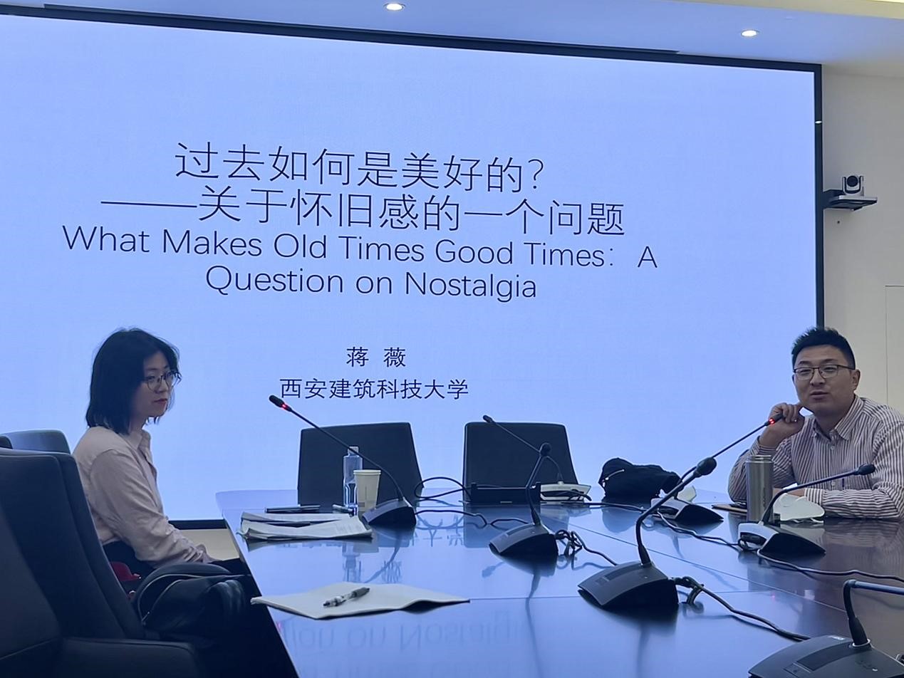 讲座伊始,蒋薇老师以分析“怀旧”和“发展”两种不同的指向为切入点,引出“在何种意义上旧时光是美好的”这一问题,并继而展开关于“怀旧感(nostalgia)”的探讨。蒋薇老师指出,怀旧感是一种常见的心理现象,在回忆过去时,我们往往会升腾起怀旧感。怀旧感既是私人化的,又是可以通过交流使之公共化的。但由于怀旧感是指向过去的情感,且在本质上蕴含了主体“过去是美好的”这种评价性认知,因此“过去是美好的”这个内置性问题是必须解决的。在讲座的第二部分,蒋薇老师驳斥了一些反对意见,并基于一种回顾性视角,认为“过去是美好的”这一刻画是引发怀旧感的本质原因。基于这一前提,蒋薇老师分别分析了怀旧感的基本特征、主体和相近概念。她认为,怀旧感指向过去而非指向回忆,其对象是过去的主体自身以及与主体自身密切相关的人或事,怀旧感也常常会被感觉线索如气味、曲调所引导而产生。怀旧感的主体是一般的日常主体,但并非所有主体,例如完全导向未来和完全活在当下的人就完全不会产生怀旧感。随后,蒋薇老师辨析了“怀旧感”和“乡愁”两个相近概念,并指出“怀旧感”是可以容纳“乡愁”的。