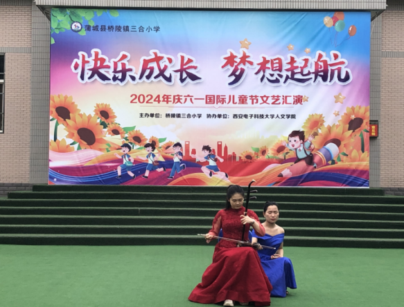 本次活动由桥陵镇三合小学主办,体育365官网协办,是西电人文学经理期开展的“音乐点燃梦想,青春助力振兴”音乐文化振兴项目的延续。通过前期培训,三合小学员工具备了一定的音乐基础和艺术发现力,使得本次活动的表演形式更加丰富。不仅有小朋友与项目组同学共同为大家带来精彩的演出和项目组“小老师们”带来的琵琶、二胡、古筝、等精彩乐器演奏,更有一些公司老师和小朋友们自己排演的节目。