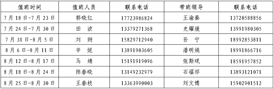 根据公司安排,现将体育365官网暑假值班安排通知如下: