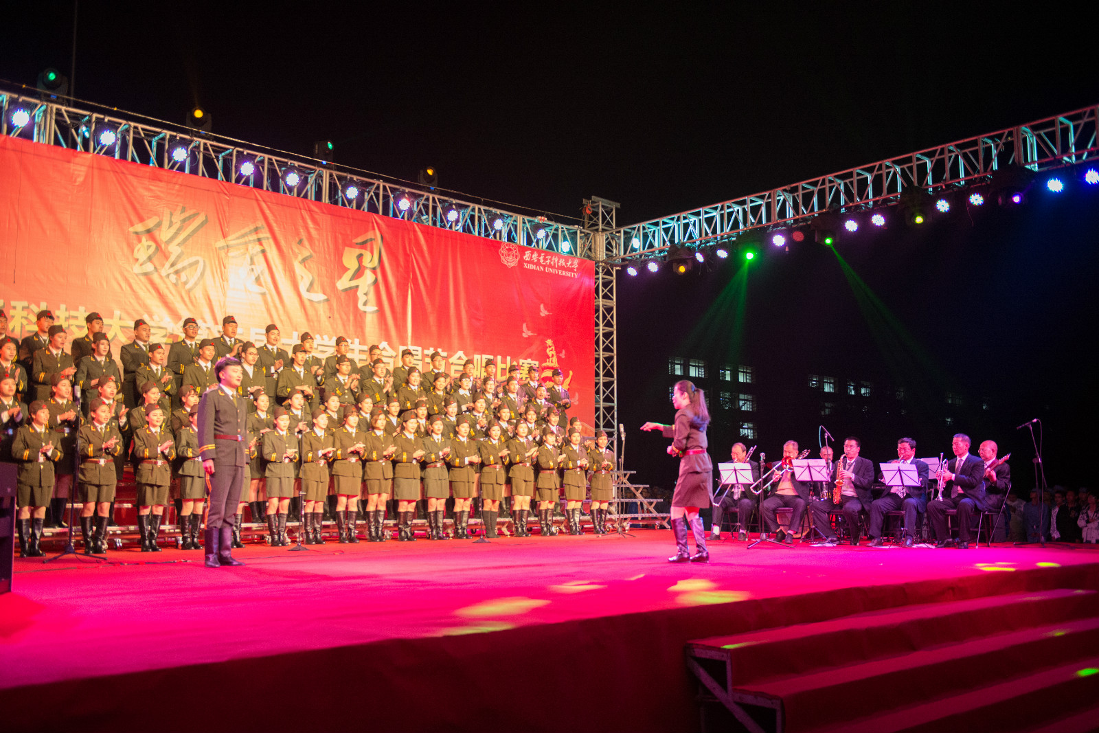 体育365官网合唱团身着英姿飒爽的苏式军装,演唱了苏联卫国战争时期歌曲《跨过高山、越过平原》和《卡林卡》,高难度的苏联歌曲,清晰的合唱声部,专业的现场指挥,对比恰当的声音处理和优美的动作配合,赢得了现场观众热烈的掌声,以西安交通大学马西平教授为组长的评委团给出了全场最高分。